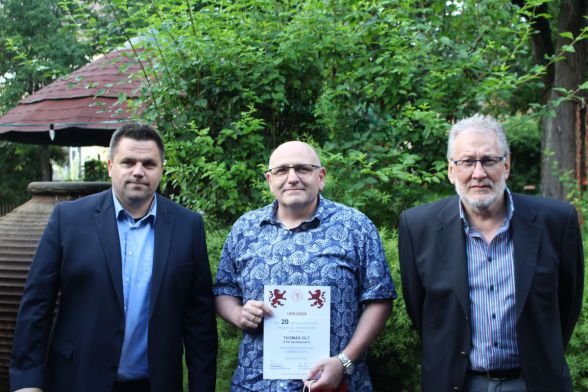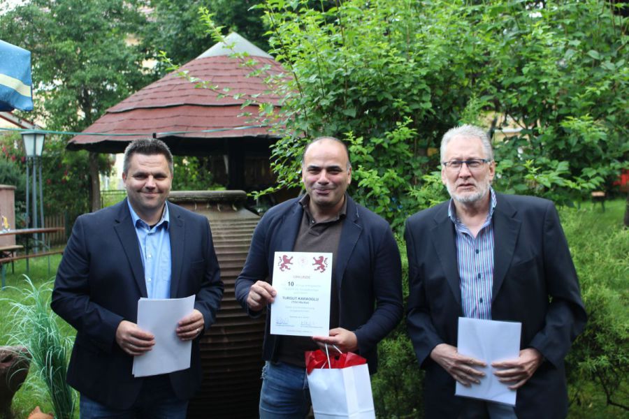 Nach einem köstlichen Grillbuffet ehrten KSO Schenk und sein Stellvertreter Klaus Ehrhard einige verdiente Schiedsrichter, wobei nicht alle zu Ehrenden anwesend sein konnten. Deren Auszeichnung wird durch den KSA nachgeholt. Es schloss sich ein gemütlicher Teil an, bei denen man vielen Anwesenden die Freude über Kontaktmöglichkeiten nach so langer Zeit der Entbehrungen ansah.