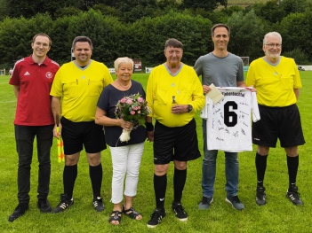 Dabei beschränkt sich sein Engagement keineswegs auf das Schiedsrichterwesen: Als Vorsitzender des FC Finkenbach, als Klassenleiter und in vielen weiteren Funktionen lebt bzw. lebte Gerd den Fußball mit jeder Faser. Unterstützt wurde das Ehrungsspiel von seinen Assistenten Thorsten Schenk (KLW) und Klaus Ehrhard (Beisitzer Ansetzungen), als langjährige Weggefährten.