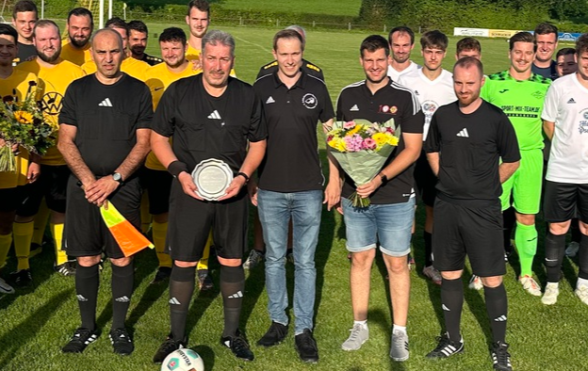 Bernd erhielt den Ehrenteller der Schiedsrichtervereinigung. Zudem erhielt er stellvertretend für seine Lebensgefährtin Ingrid einen Blumenstrauß für die Unterstützung in den letzten Jahrzenten.