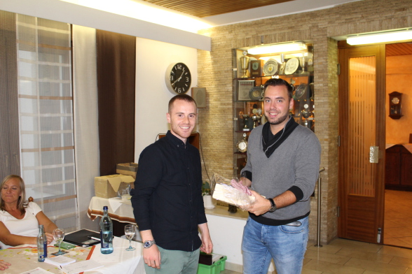 Nach dem Referat rückte Trumpfheller selbst in den Mittelpunkt. In seiner Eigenschaft als stellvertretender Vorsitzender des Schiedsrichter-Sport-Vereins ehrte ihn Hartmut Schwöbel für seinen Aufstieg in die Hessenliga und überreichte ein Präsent. Schwöbel betonte dabei, wie herausragend diese Leistung für den Odenwaldkreis ist und wünschte für die neue Saison alles Gute.
